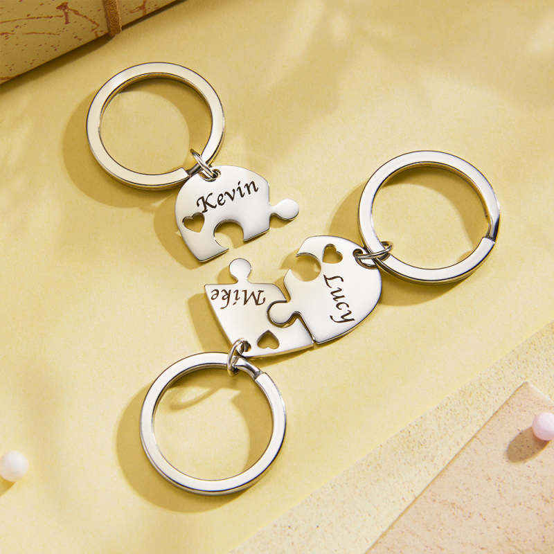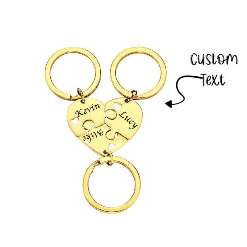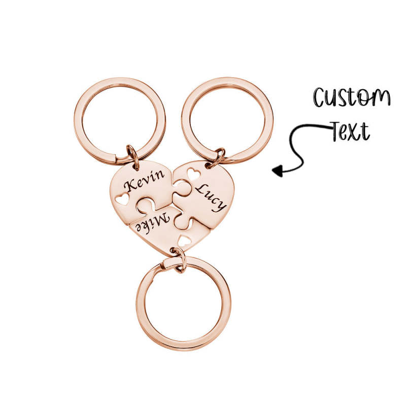 This key chain adopts heart-shaped puzzle design and can be disassembled for use. This Keychain has a custom name and is available in three colors. The product is of good quality, light weight and not easy to damage. It can be used safely. The key chain can be engraved with the names of three people, which is suitable for family or friends. When you get together, you can spell it completely.