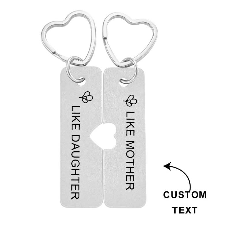 Attached to a stainless steel ring and chain and engraved with message, this keyring pair, is a lovely way to let Mum or Daughter know they are always in your thoughts and keep them close. Perfect for Birthdays, Going Away Presents, Christmas, Mothers Day or simply a gift to let Mum or Daughter know you are thinking of them.