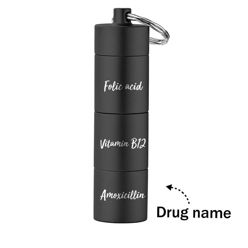 Combining a small medicine box with a keychain, a portable multifunctional keychain was born! The medicine box is divided into three layers, which can also be disassembled and combined into two layers, and each layer can be customized with a medicine name. You only need to enter the information you need to customize, and we will provide you with a portable artifact that is exclusive to you!