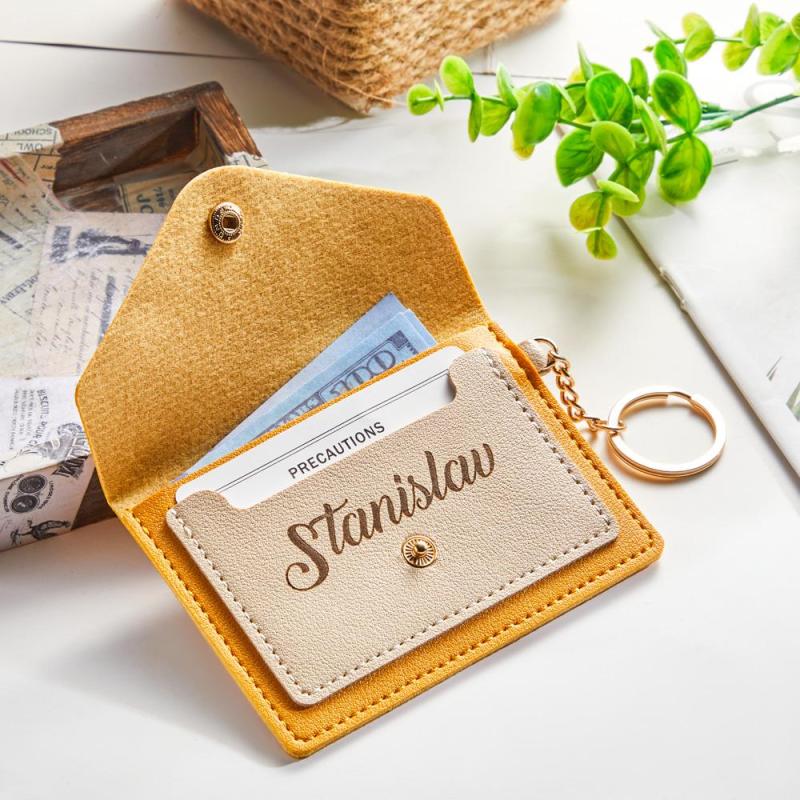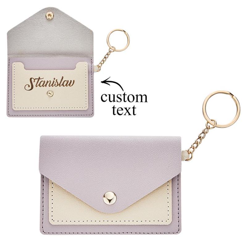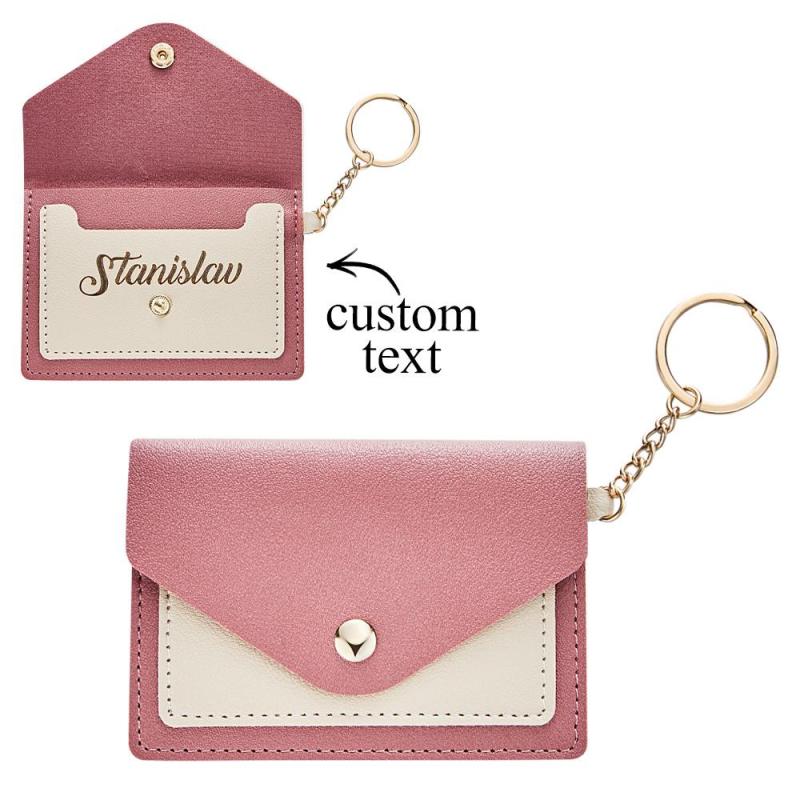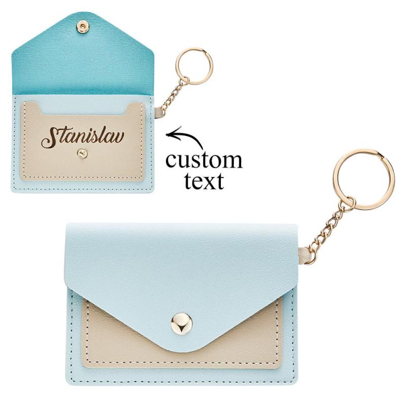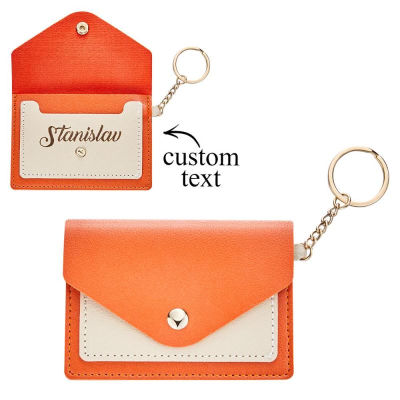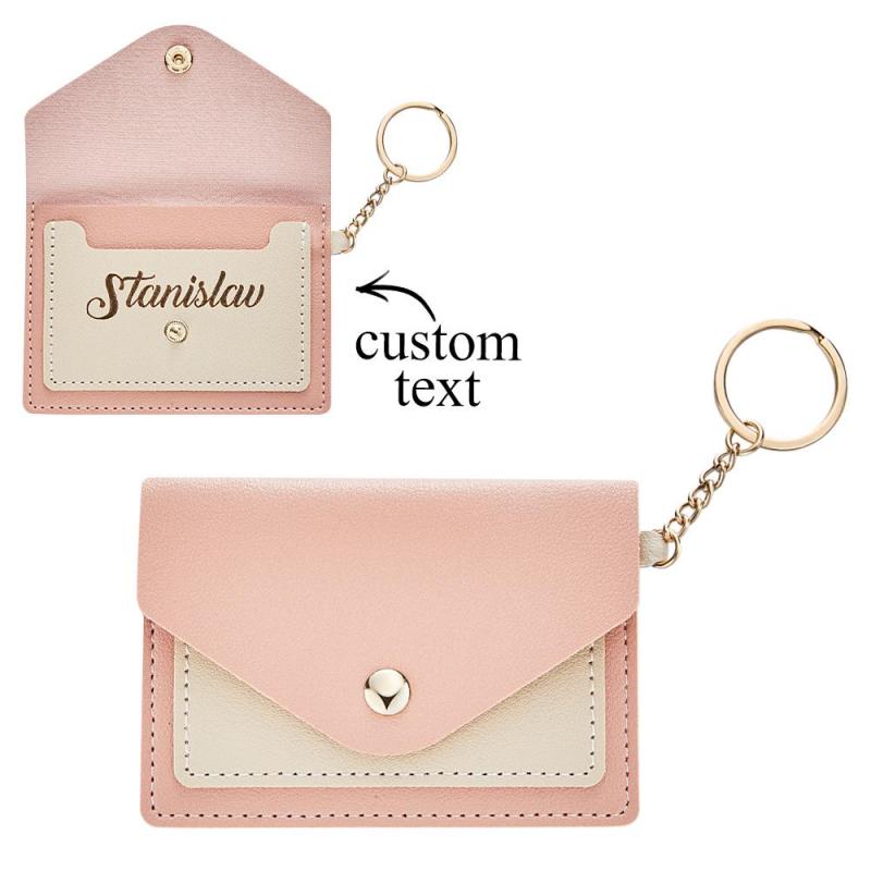 Custom Engraved Keychain Wallet Leather Card Holder Creative Gifts