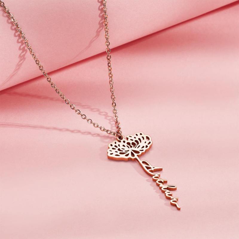 Custom Engraved Necklace Rose Shape Memorial Gift-Rose Gold