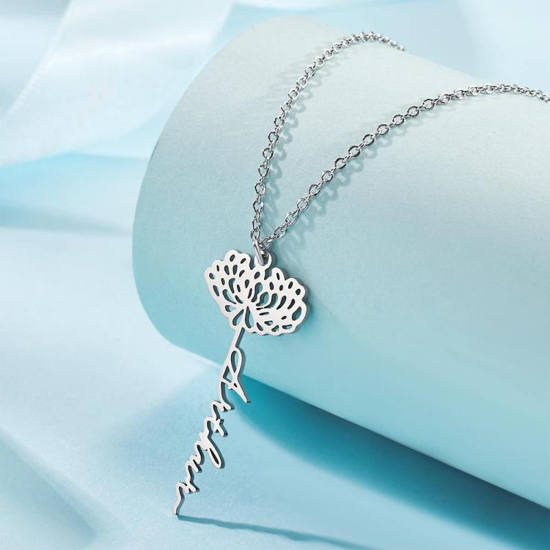Custom Engraved Necklace Rose Shape Memorial Gift-Silver