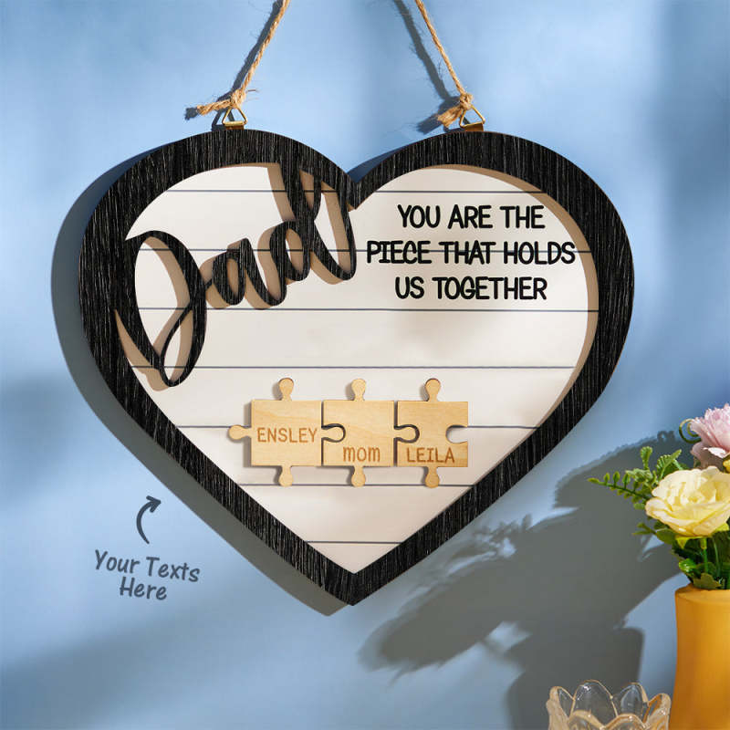 Our DAD You Are the Piece that Holds Us Together Puzzle Sign makes the perfect anniversary, birthday, Mother's Day, Father's Day, or any day gift!Is your dad the piece that holds your family together? If so, show his how much you care with this thoughtful and personalised gift that will surely be treasured for years to come.