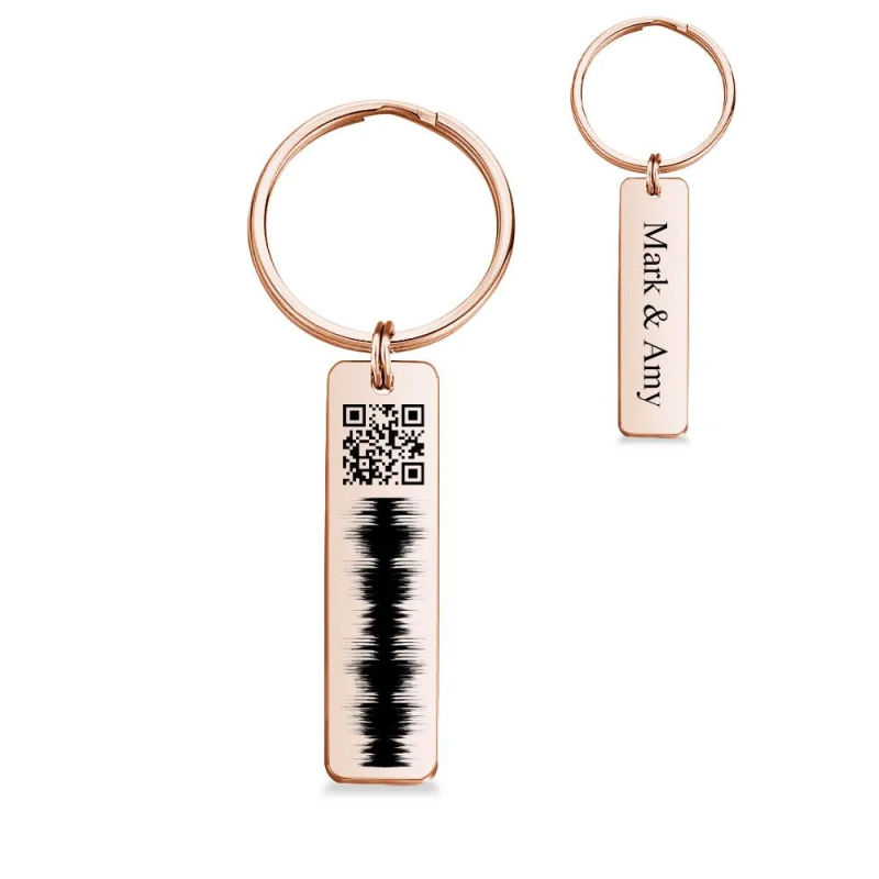 Custom Engraved QR code Keychain Scannable Code Sonic Audio Technology Gift Silver