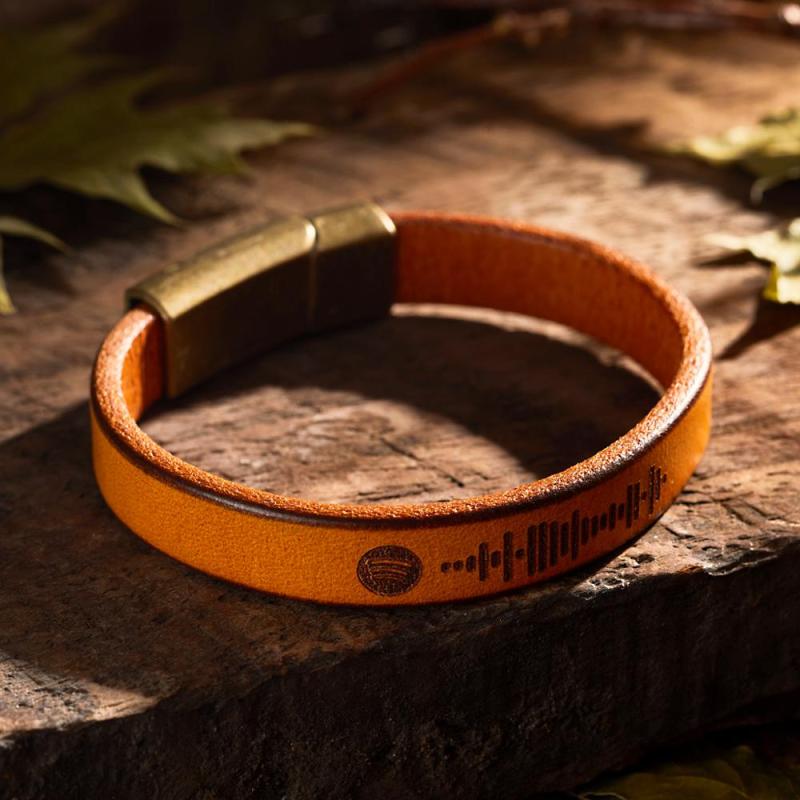 Custom Engraved Spotify Code Bracelet Personalized Song Leather Bracelet with Strong Magnetic Clasp