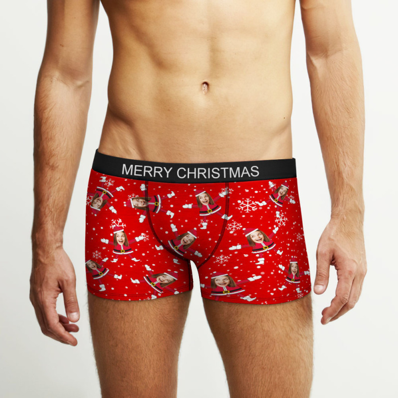 Custom Face Boxers Santa Claus Face Underwear Couple Gifts Christmas Gift AR View