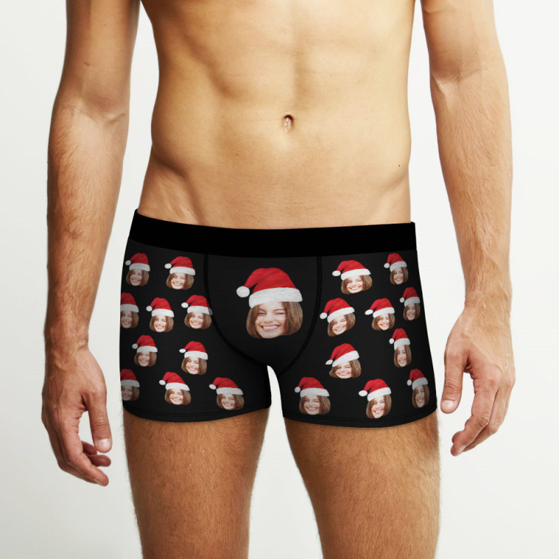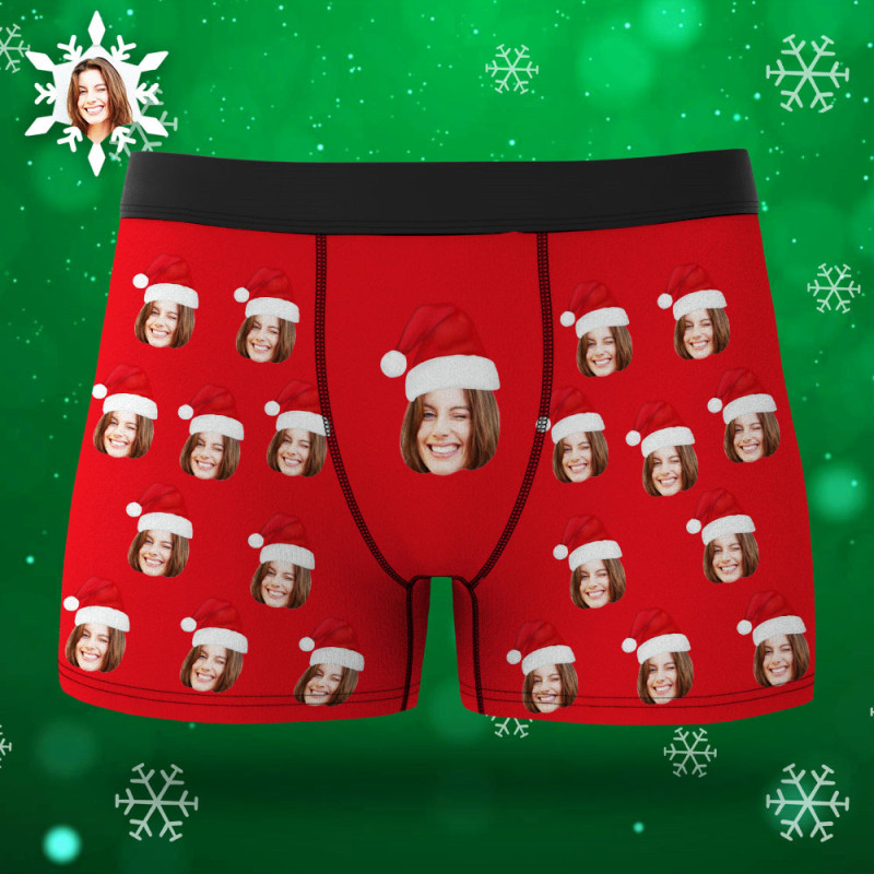 Custom Face Boxers Shorts With Christmas hat Personalized Photo Underwear Christmas Gift For Men AR View Gift