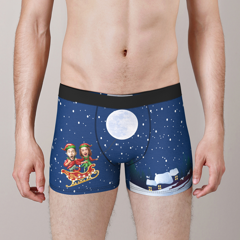Custom Face Christmas Boxer, Funny Christmas Elf Couple Boxer, Best Christmas Gift For Boyfriend