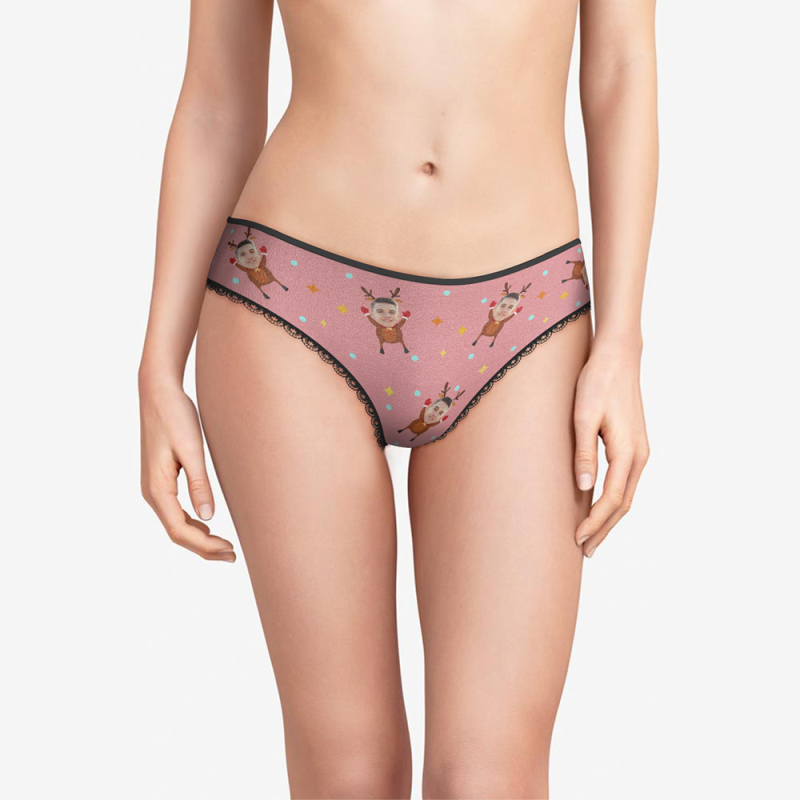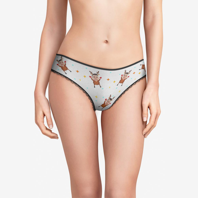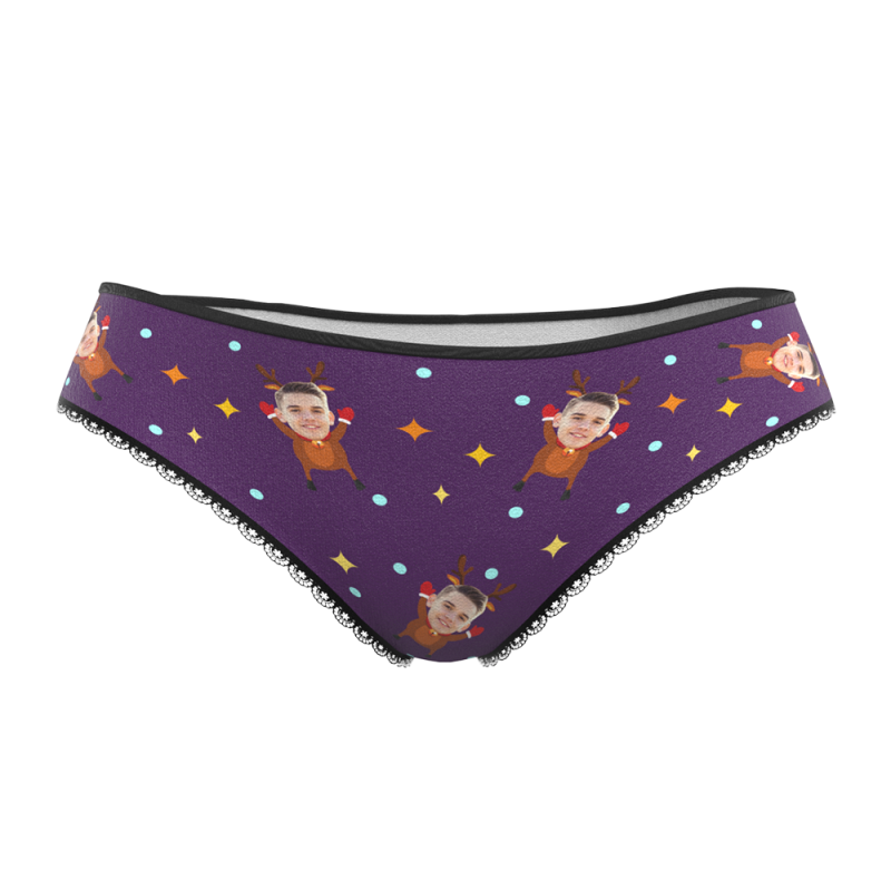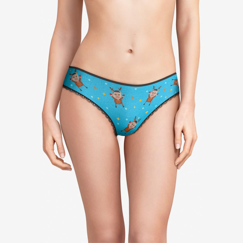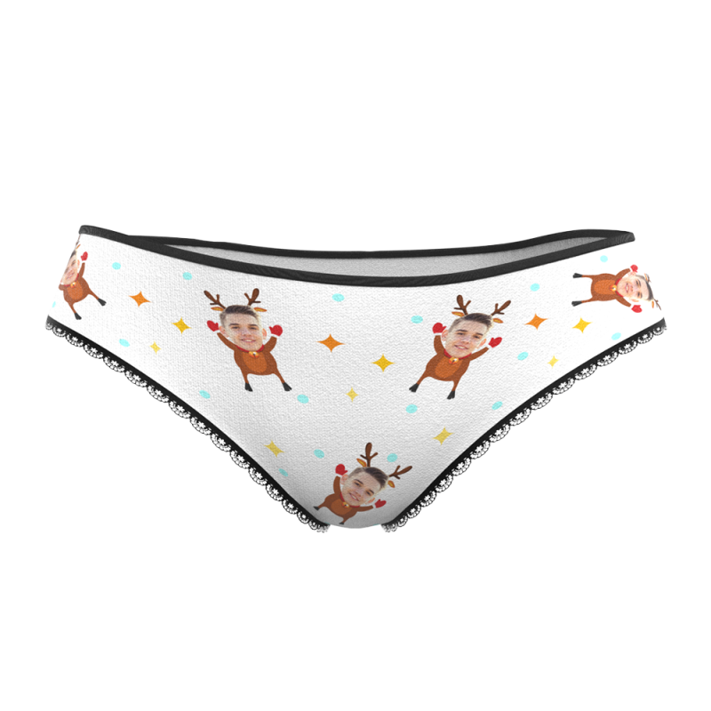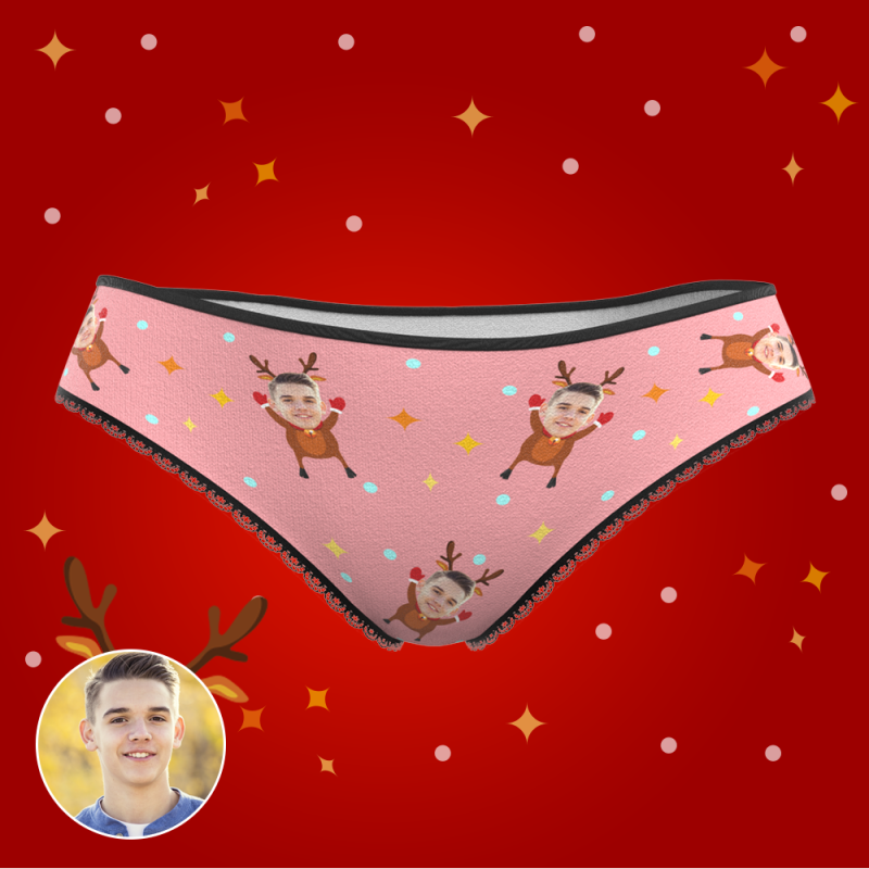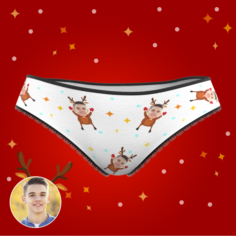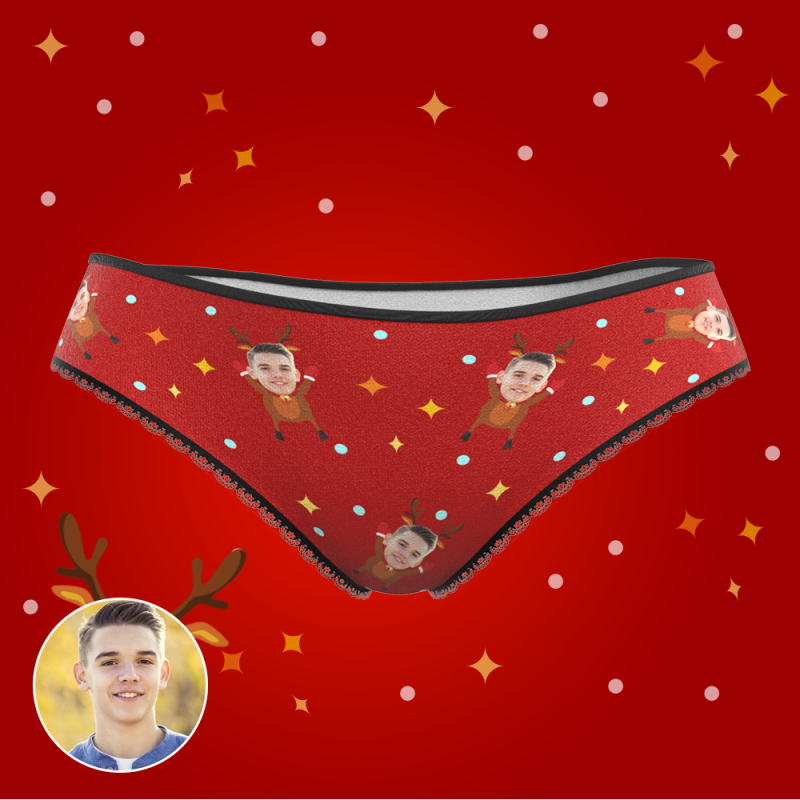 Custom Face Christmas Underwear, Funny Christmas elk Face Underwear, Best Christmas Gift For Girfriend