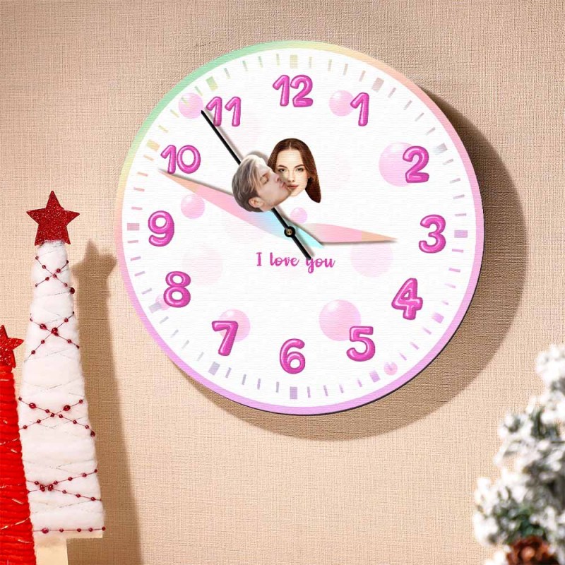 Celebrate your love every minute with this exceptional Custom Face Clock! Personalize the clock face with your own face and that of your partner and watch the second-hand "kiss" your loved-one each passing minute. This unique piece adds a touch of sentimental charm to any home decor - a must-have Christmas gift!