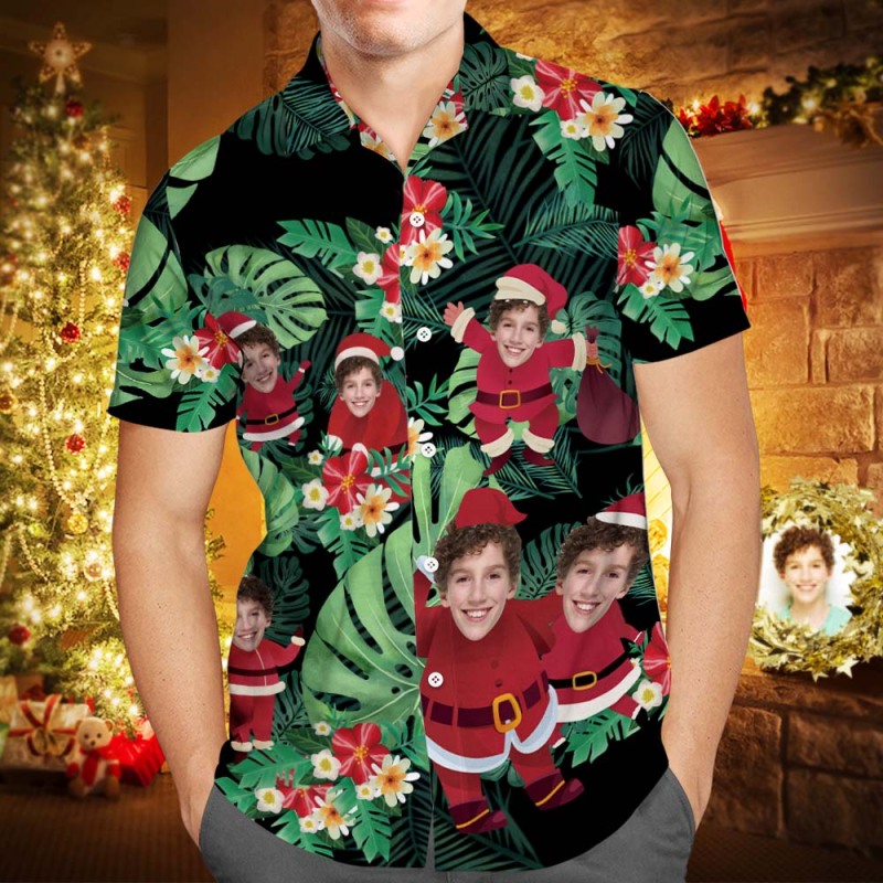 Custom Face Family Matching Hawaiian Outfit Christmas Pool Party Parent-child Wears - Santa Claus Holiday Gifts