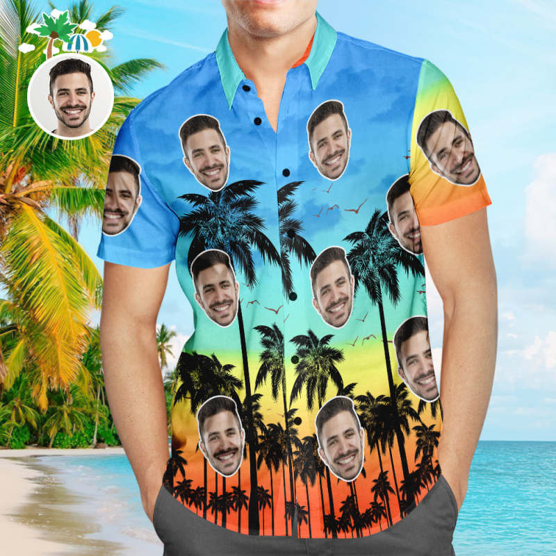 Custom Face Hawaiian Shirt Beach Palm Party Personalized Aloha Beach Shirt For Men