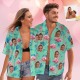 Custom Face Hawaiian Shirt Flamingo Tropical Shirt Couple Outfit ALL Over Printed Green and Palm Leaves