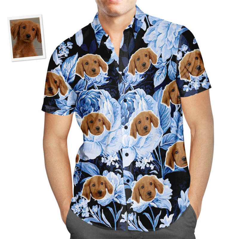 Custom Face Hawaiian Shirt Tropical Blue Retro Flower Men's Popular All Over Print Hawaiian Beach Shirt Holiday Gift