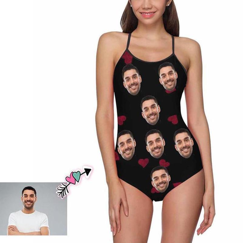 Custom Face Love Heart Women S Slip One Piece Swimsuit