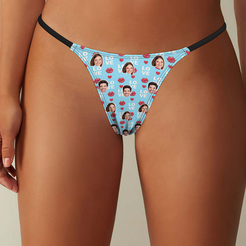 Custom Face Love Women's Tanga Thong Lip Print Valentine's Day Gift