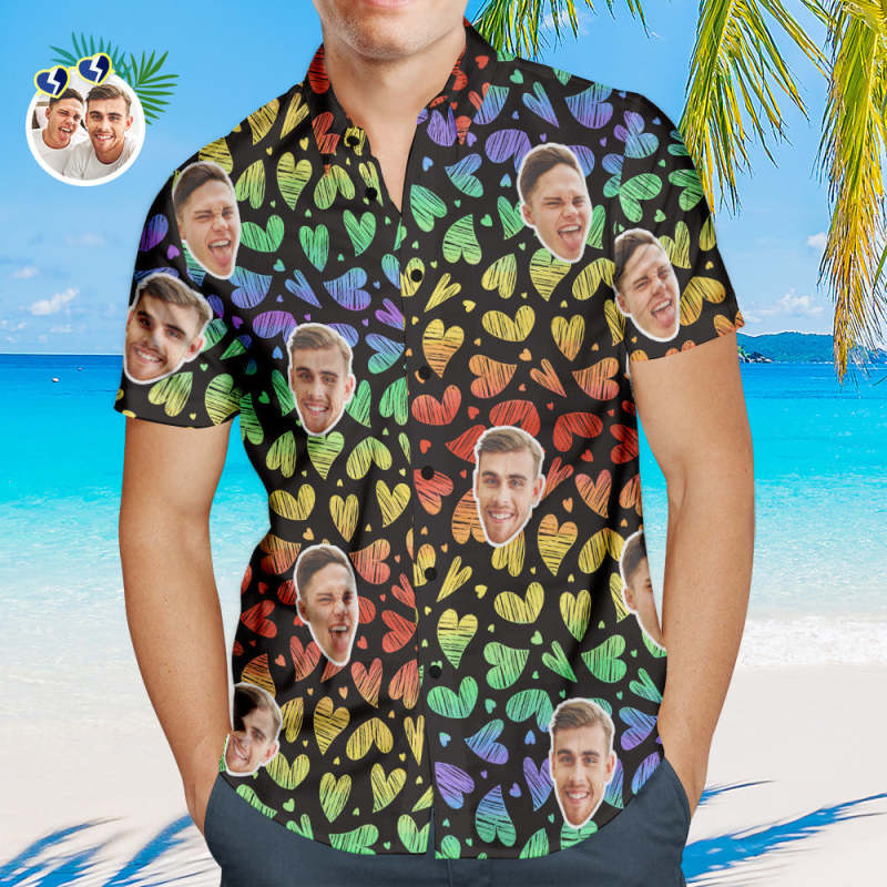 Custom Face Men Hawaiian Shirts Personalized LGBTQ Gay Pride Shirt - Rainbow Love