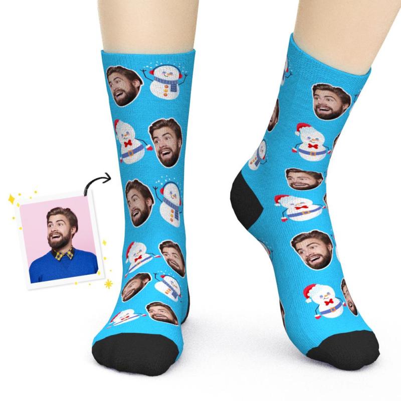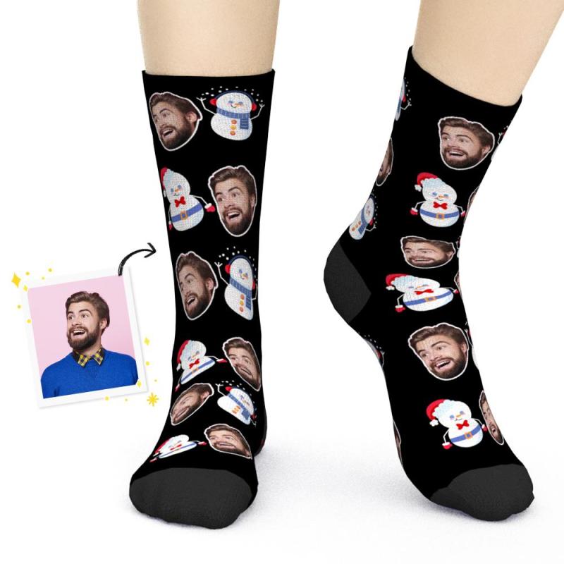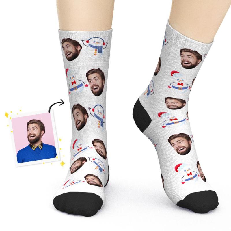 Custom Face Socks Cute Snowman Christmas Photo Socks Gifts for Friends