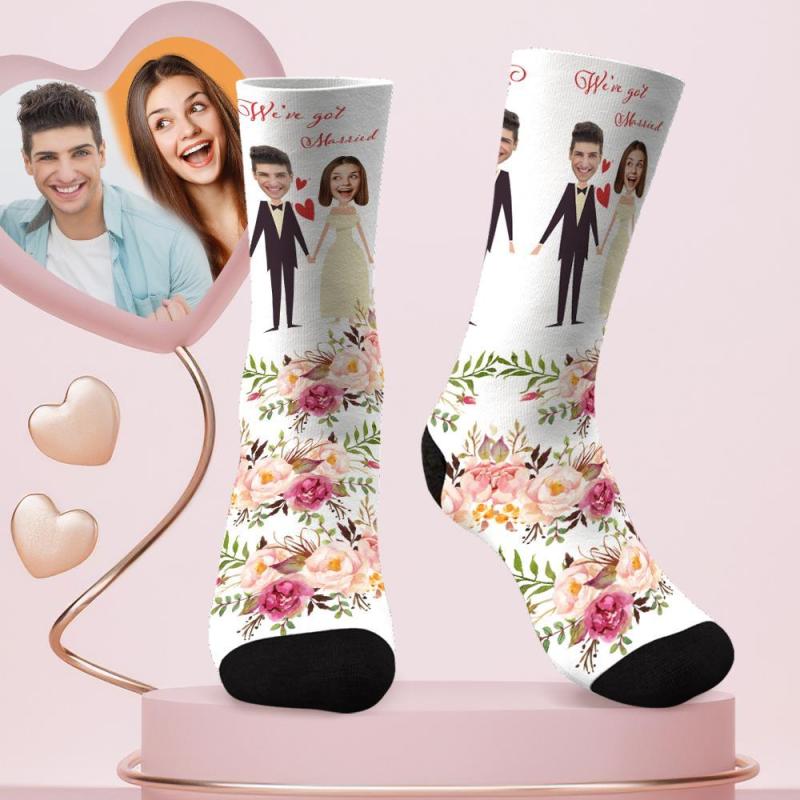 Custom Face Socks Personalized Couple Flower Socks for Husband and Wife