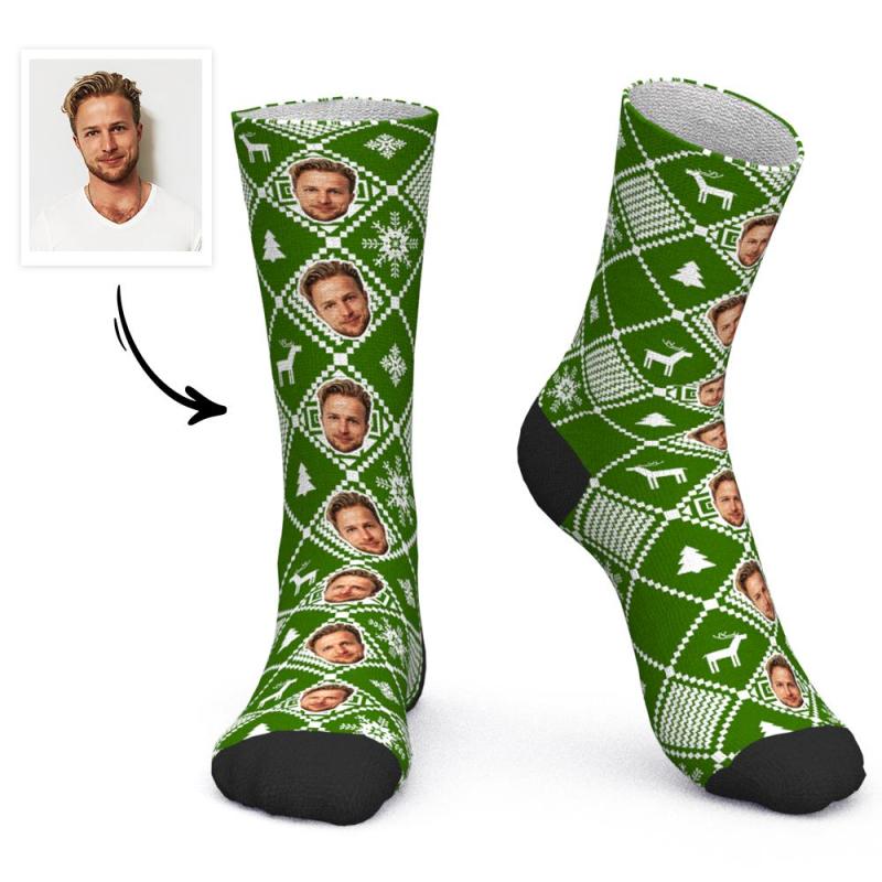 Custom Face Socks Personalized Photo Socks Christmas Gift Santa Socks - Color Grid