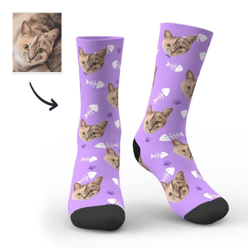 Custom Face Socks Simple Cat Avatar