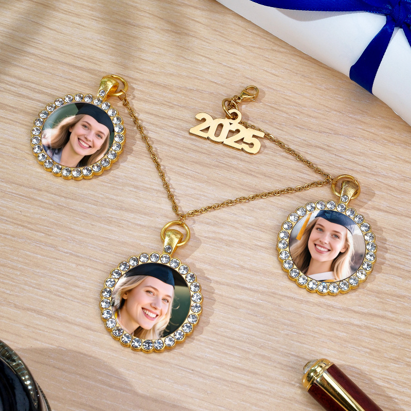 Celebrate your special day by honoring a loved one with this personalized memorial tassel charm. This meaningful keepsake allows you to upload a cherished photo of someone who has passed away, helping keep their memory alive during your graduation moment. Designed to securely attach to your graduation tassel, it serves as a heartfelt tribute, reminding you of their love, guidance, and unwavering support. A touching way to include their presence in your celebration, this custom keepsake will be treasured for years to come.