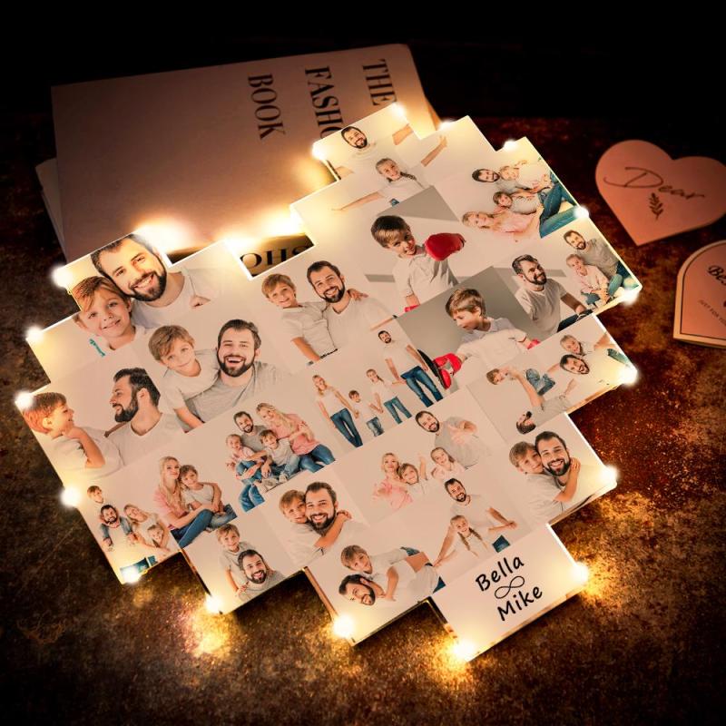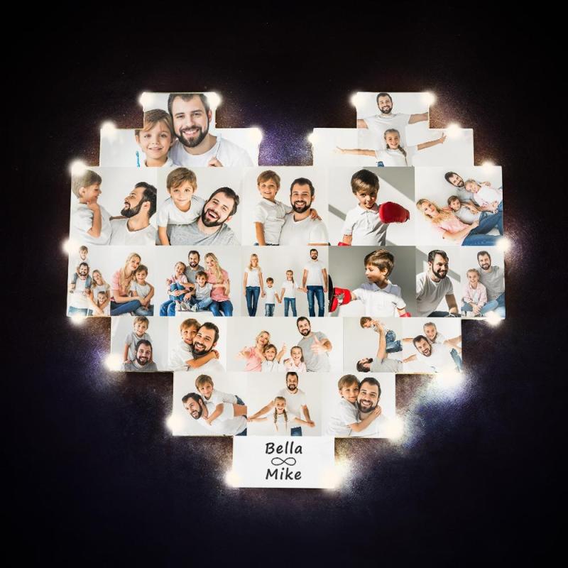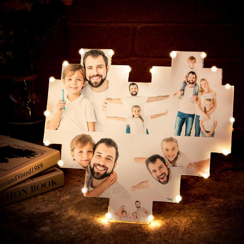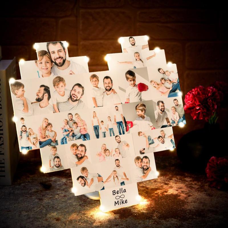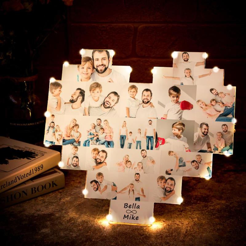 Custom Heart Photo Lamp Wall Art Decor Album Gift For Father's Day