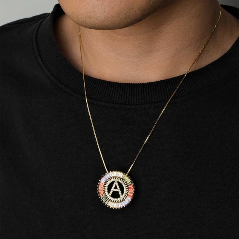 Custom Initial Letter Diamond Necklace Colorful Sunburst Hip Hop Necklace For Him