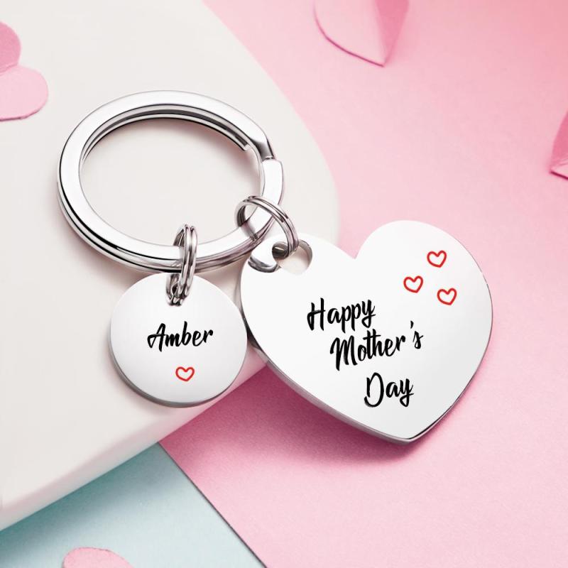 Custom Keychain Engraved Heart Keychain Mother's Day Gift