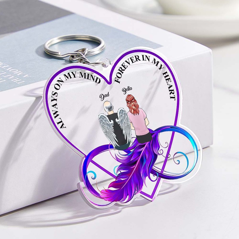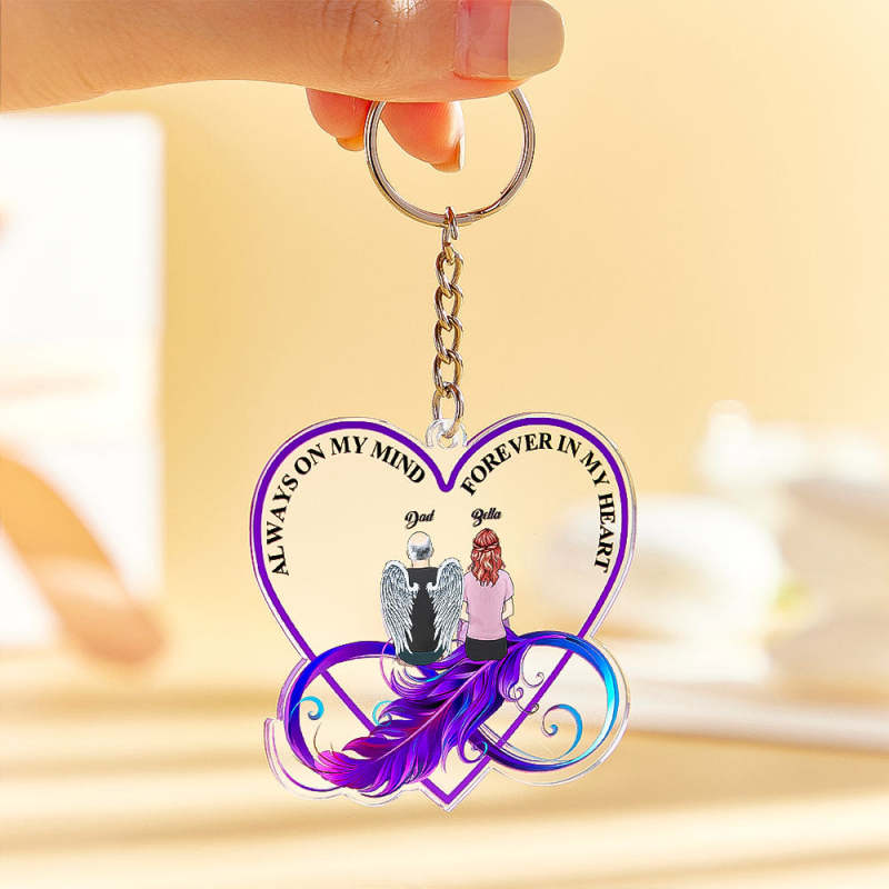 This custom keychain memorial heart keyring is the perfect way to keep cherished memories alive. This personalized keyring features a cartoon image of a father and daughter along with a custom name. With a range of clothes color and hairstyle options to choose from, you can create an individual keychain that reflects the unique bond between father and daughter. The acrylic keyring is a lasting tribute and a treasured keepsake that will be cherished forever.