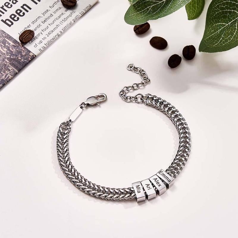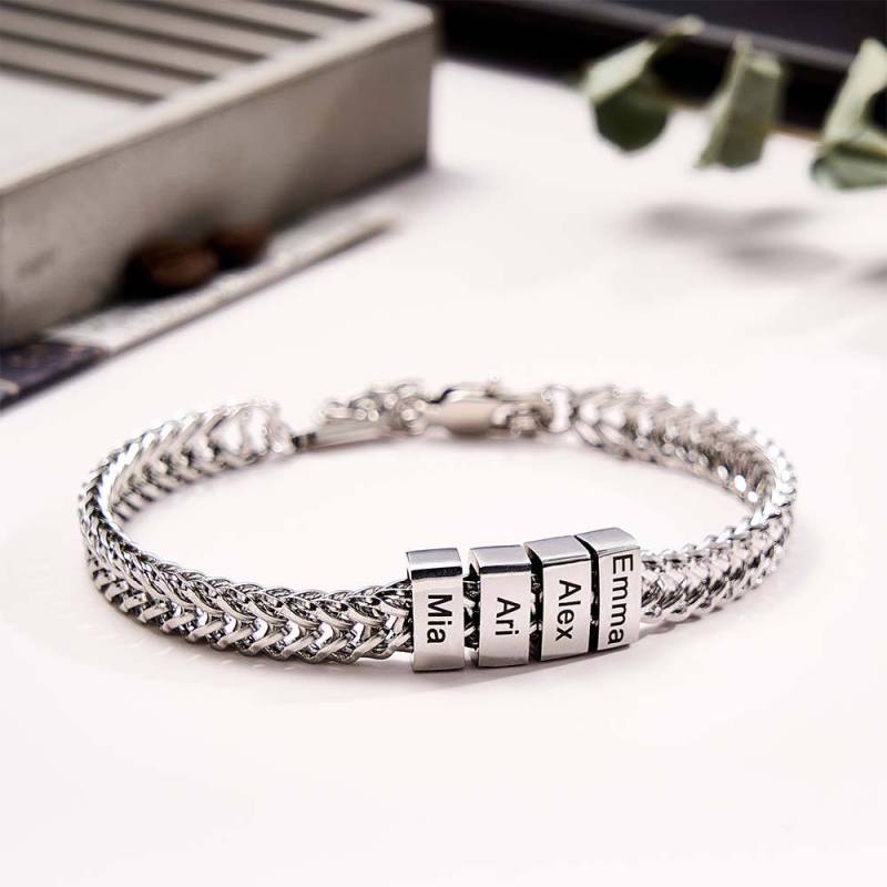 Introducing our personalized Dad Bracelet, a heartfelt piece for every proud father to cherish. Handcrafted with love, this bracelet features a stainless steel band intricately engraved with the names of your beloved kids. With each glance at your wrist, you'll be reminded of the special bond you share with them. The adjustable clasp ensures a comfortable fit, while the durable materials guarantee long-lasting wear. Whether it's a gift for Father's Day, a birthday, or just to show your appreciation, this Dad Bracelet with Kids' Names is the ultimate symbol of love and family.
