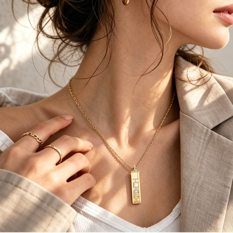 Custom Letters Necklace & Bracelet - Optional Charm, Double-Sided Skinny Pendant - Perfect Gift for Her