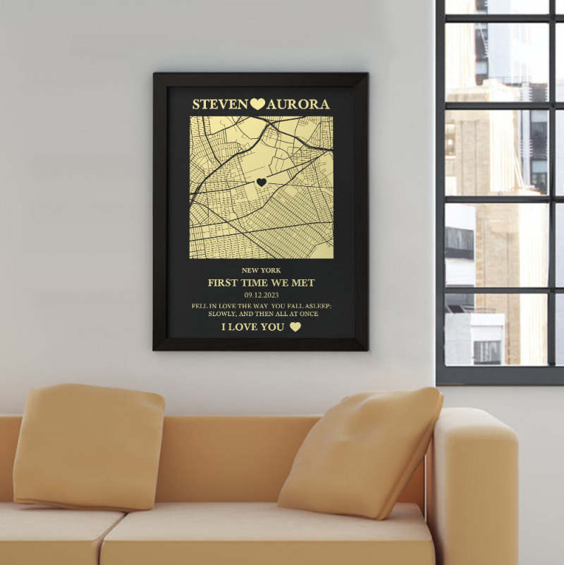 Crafted with care and attention to detail, this wooden frame features a customizable map design, allowing you to pinpoint the exact location where your journey together started. Whether it's where you first met, shared your first kiss, or got engaged, this frame commemorates the significance of that moment in your lives.