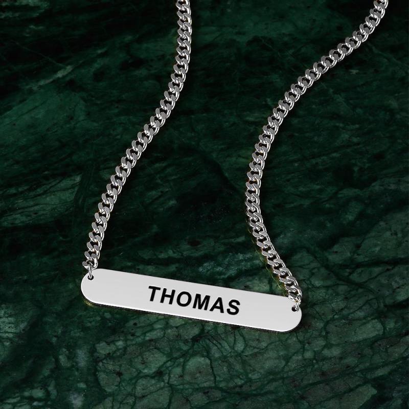 Nothing is more chic than a simple bold curb chain! This necklace has daintier font than our regular Custom Name Necklace so it fits nicely as a choker necklace.Customize this with any name or word of your choice. Custom Men's Bracelet Necklace Engraved Necklace Thick Chain Punk for Business Man - Silver