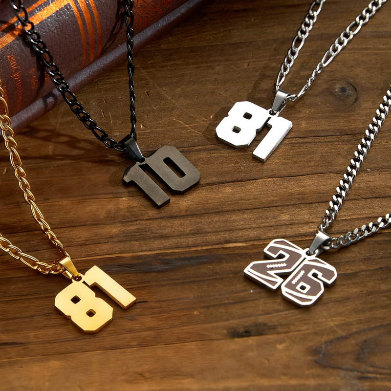 Custom Men's Number Necklace Stainless Steel Sports Pendant for Athletes & Football Lovers Personalized Player Jewelry Gift