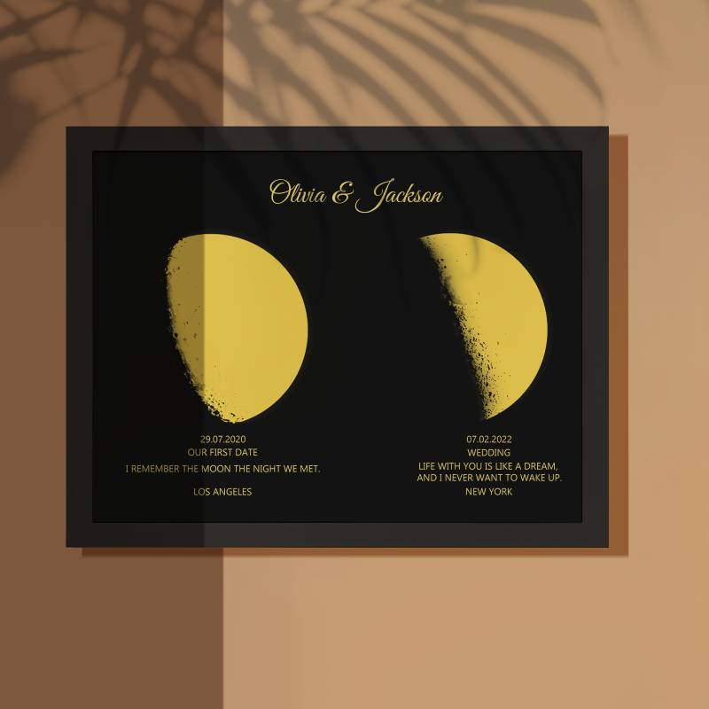 Learn the lunar phases and personalized names with our Custom Moon Phase and Names Wooden Frame. Enter a birth date to experience the moon's cycle and find out what it's like to live on the moon. With eight distinct phases and customizable text, this frame is an educational and unique addition to any space enthusiast's collection.