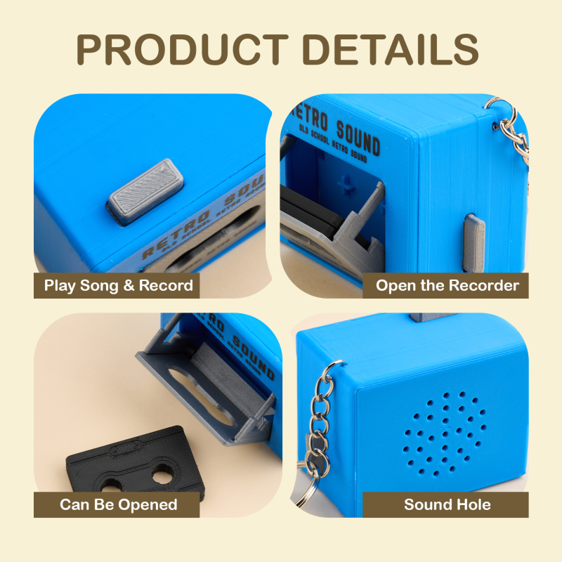 Capture your memories in a stylish, portable way with our Custom Music Voice Recorder Keychain. This adorable music keychain features a tiny cassette-tape design that doubles as a voice recorder, letting you record personalized messages, songs, or moments on the go. Perfect as a thoughtful gift for music lovers, students, or anyone who wants a unique keepsake, this miniature nostalgia meets modern technology accessory is both functional and fun. Record, save, and replay your special sounds anytime, all while keeping your keys organized in one charming package.