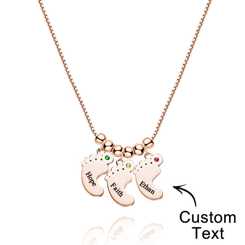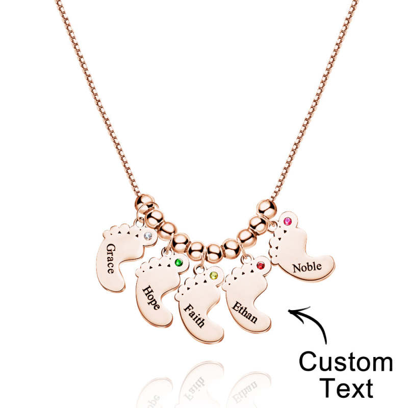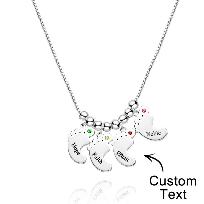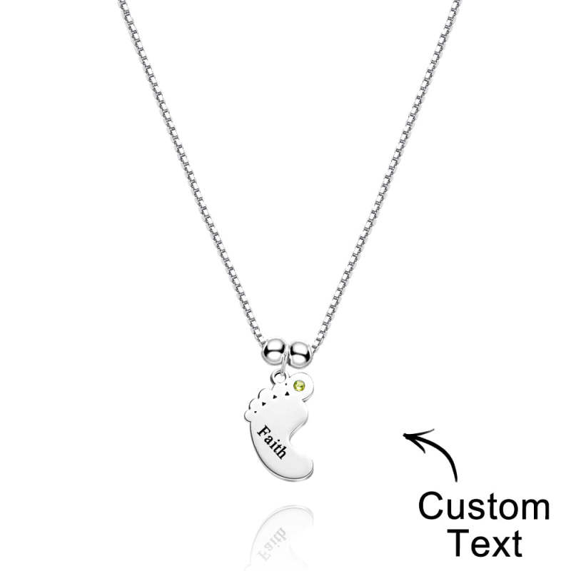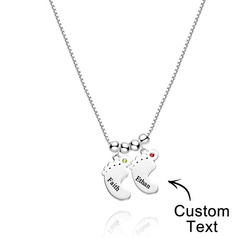 Custom Name Birthstone Baby Feet Charm Necklace For Christmas