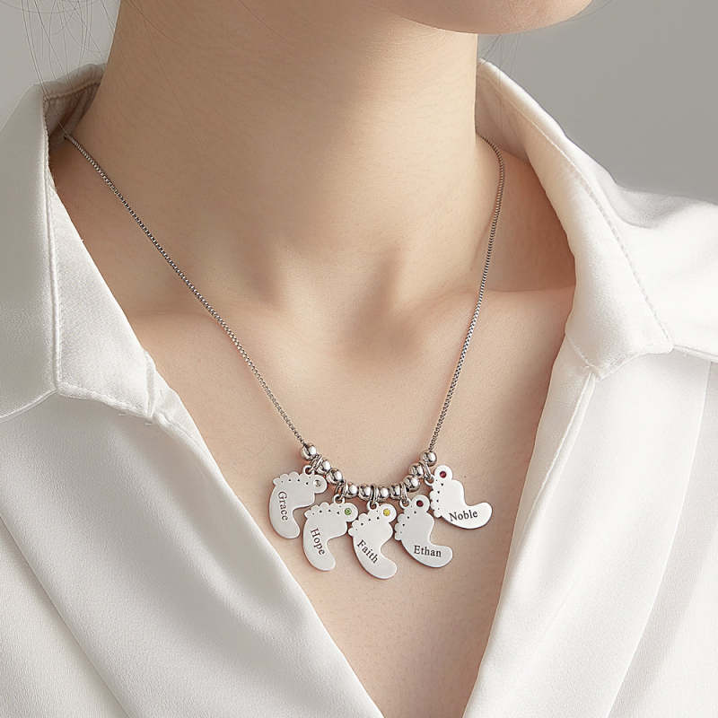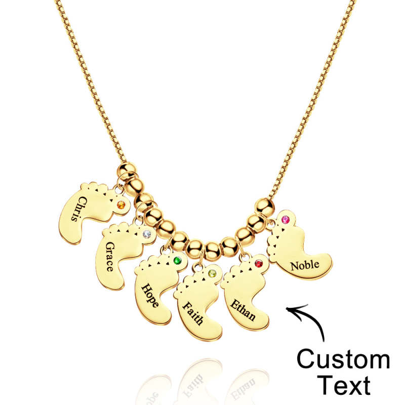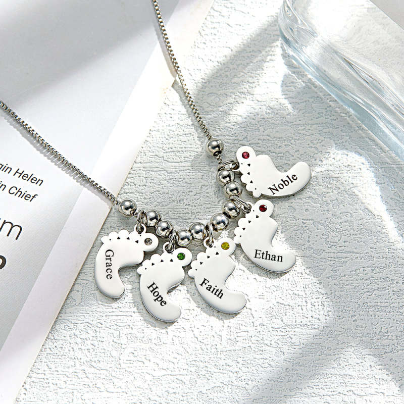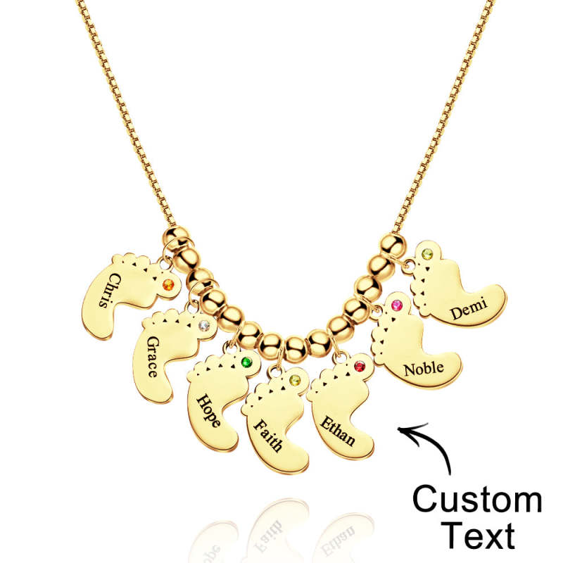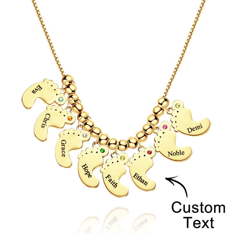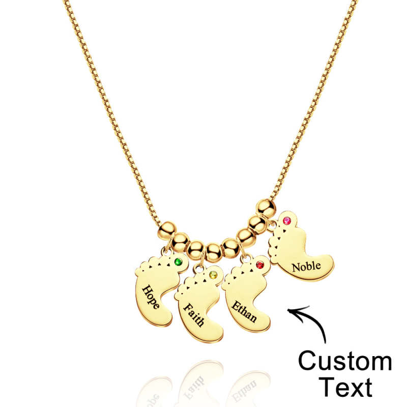 Custom Name Birthstone Baby Feet Charm Necklace For Christmas