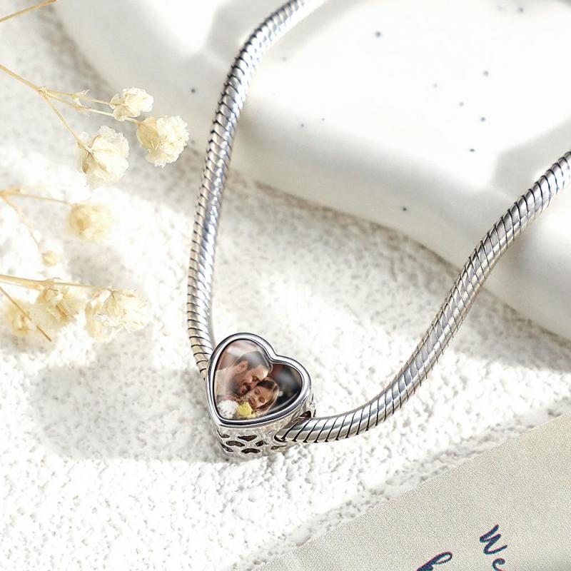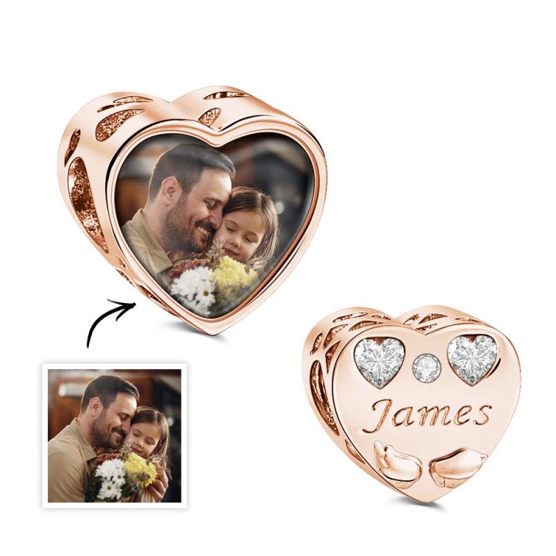Custom Name Birthstone Heart Photo Charm Love Wings Heart Gift