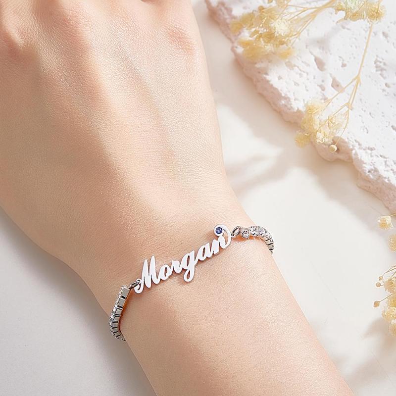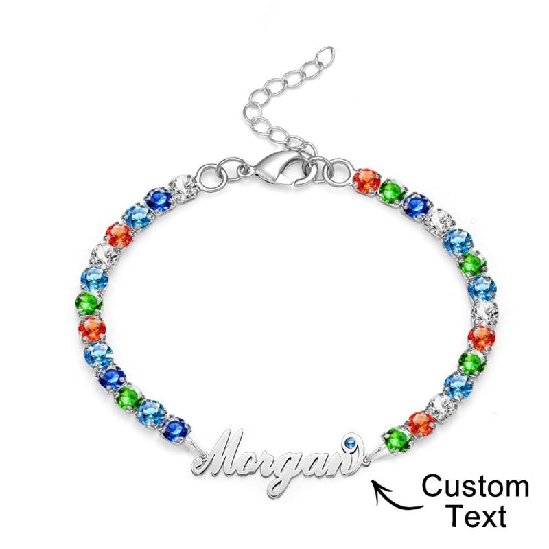 Custom Name Birthstone Tennis Bracelet Trendy All Diamonds Bracelet Gift For Her