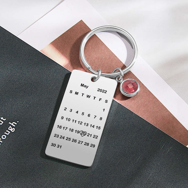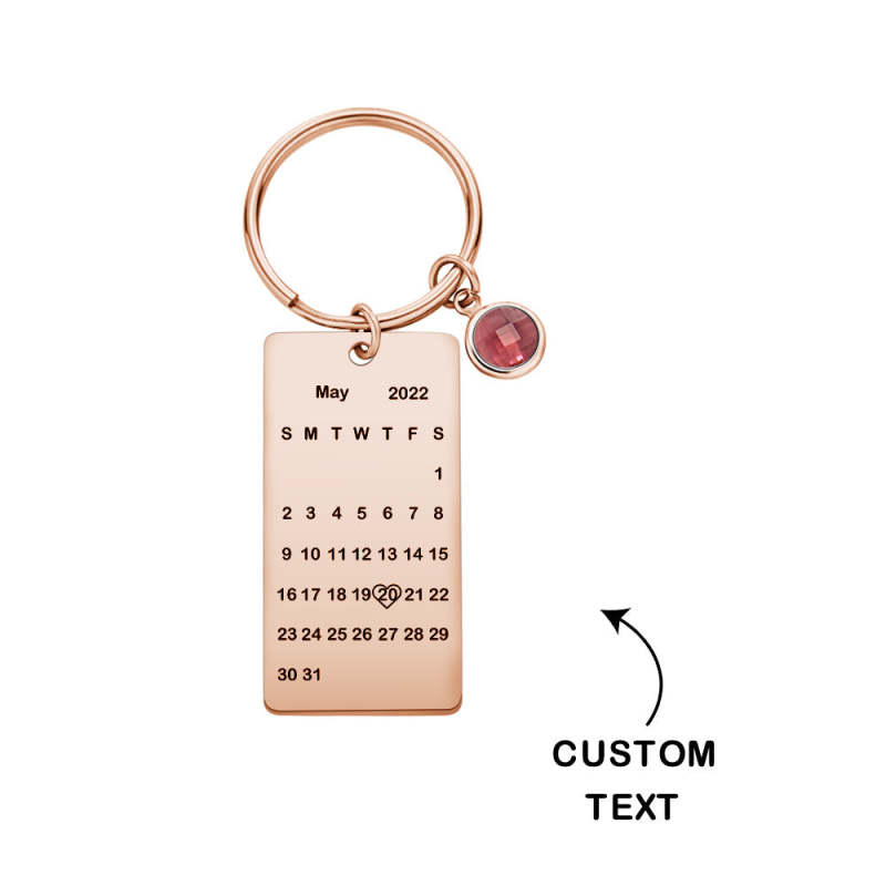 This Keychain can customize the text and date. This Keychain features a unique calendar design with a birthstone. It's a good choice to match it with the key. On the keychain, you can choose a day with unique significance for you, which will remind you all the time and help you record the beauty of this day.