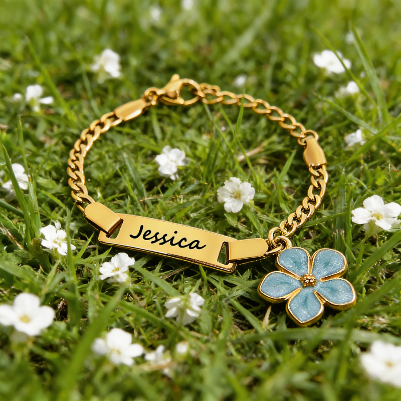 The true highlight is the lovely Personalized Daisy Flower Charm, which can be delicately engraved with her name. This sweet daisy symbol of innocence and joy, combined with her special name, transforms the bracelet into a treasured keepsake. Crafted with care from hypoallergenic materials and a secure, child-friendly clasp, it’s built for both style and safety.