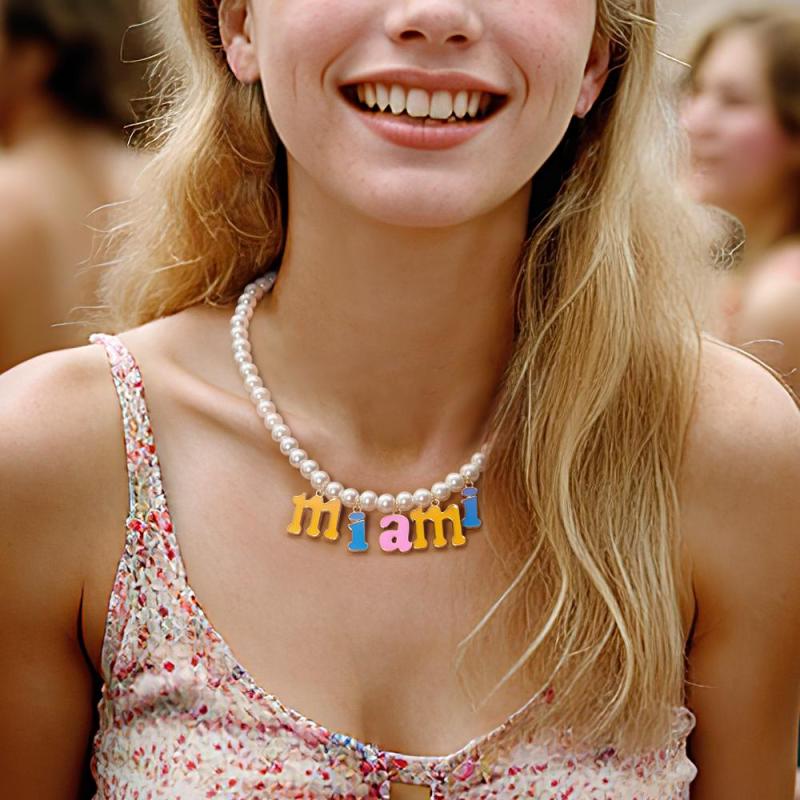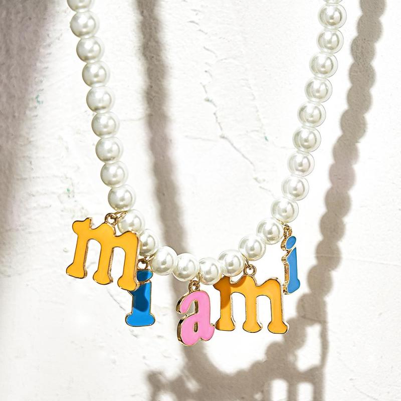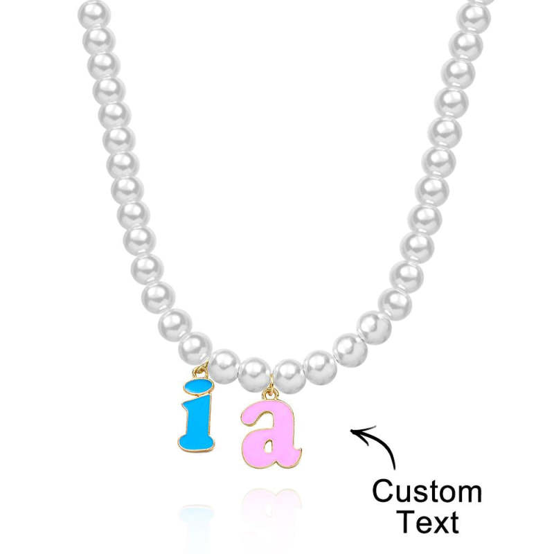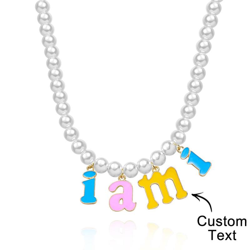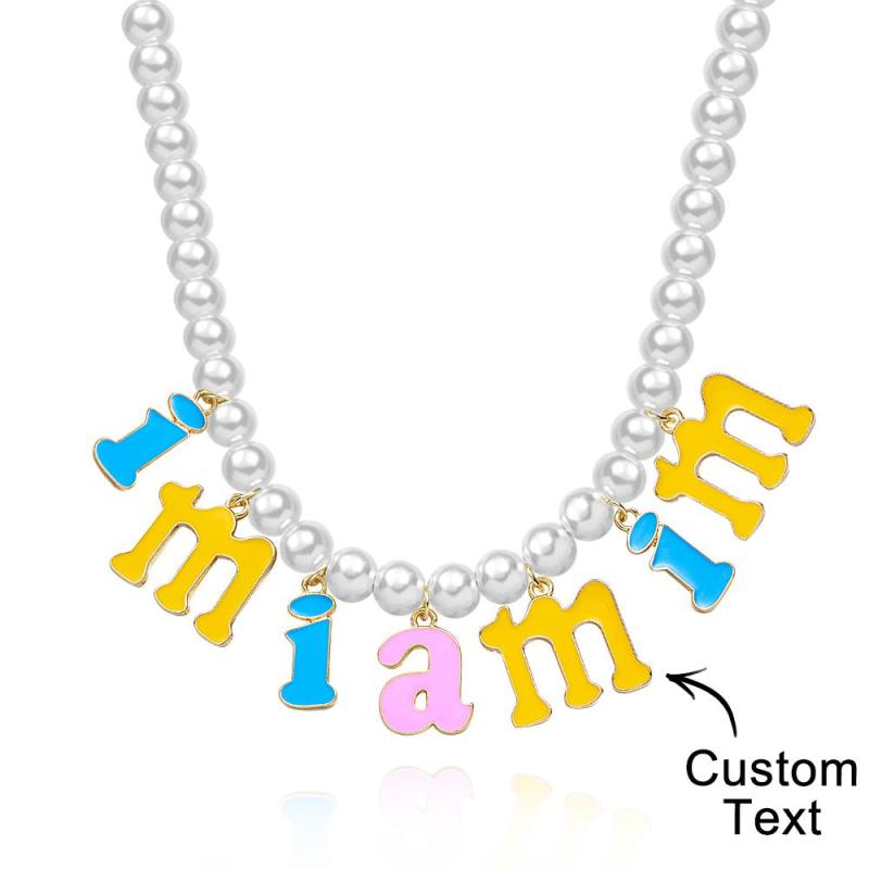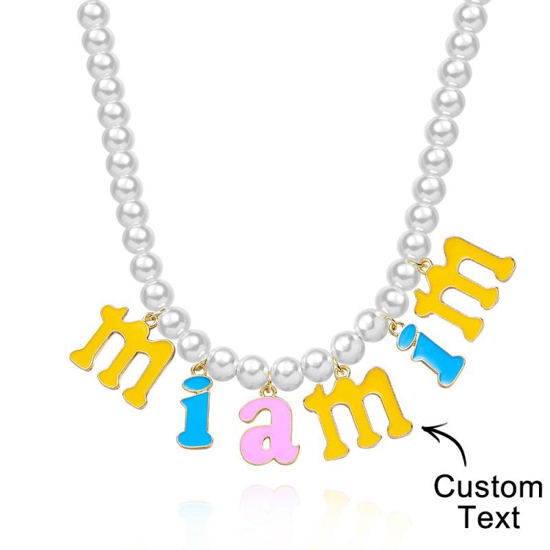Custom Name Necklace Fashion Pearl Chain Colorful Young Gift