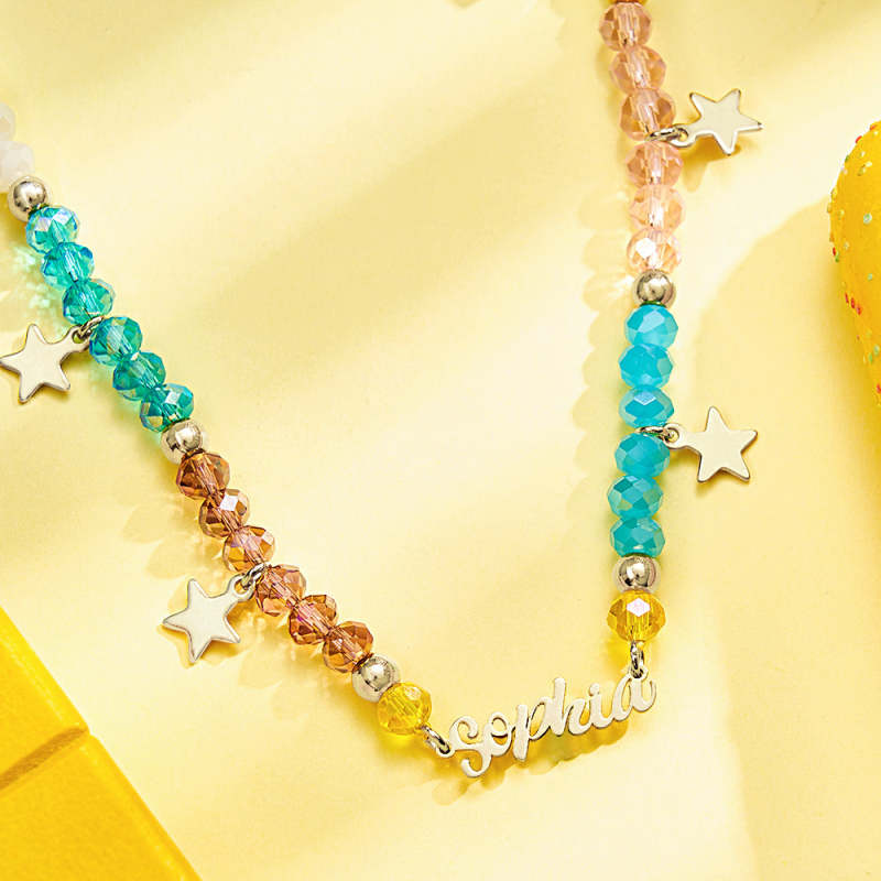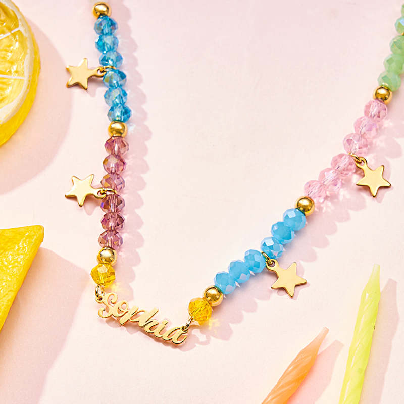 Introducing our Custom Name Necklace Summer Fashion Colorful Beaded Necklace for Kids. The perfect accessory to brighten up your little one's summer wardrobe!