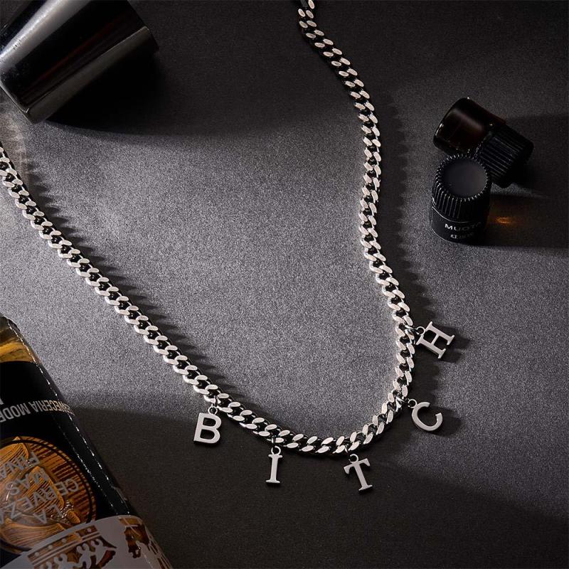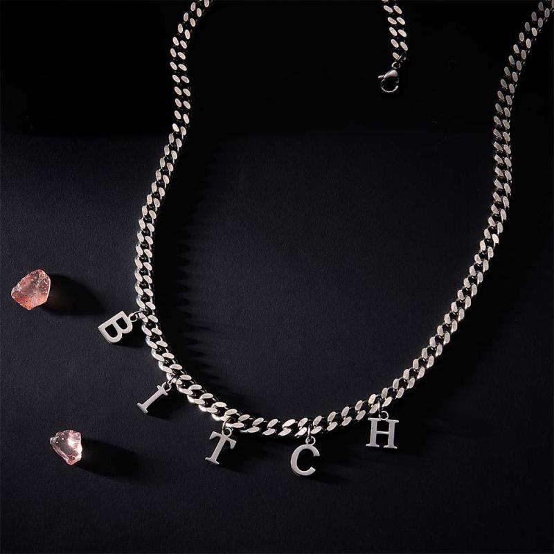 Custom Name Necklace Letter Curb Chain Choker Rave Edgy Punk Goth Jewelry Unique Gift