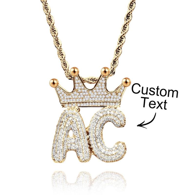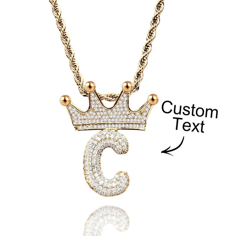 Custom Name Necklace With Crown Trendy Letter Chain Hip Hop Necklace For Men