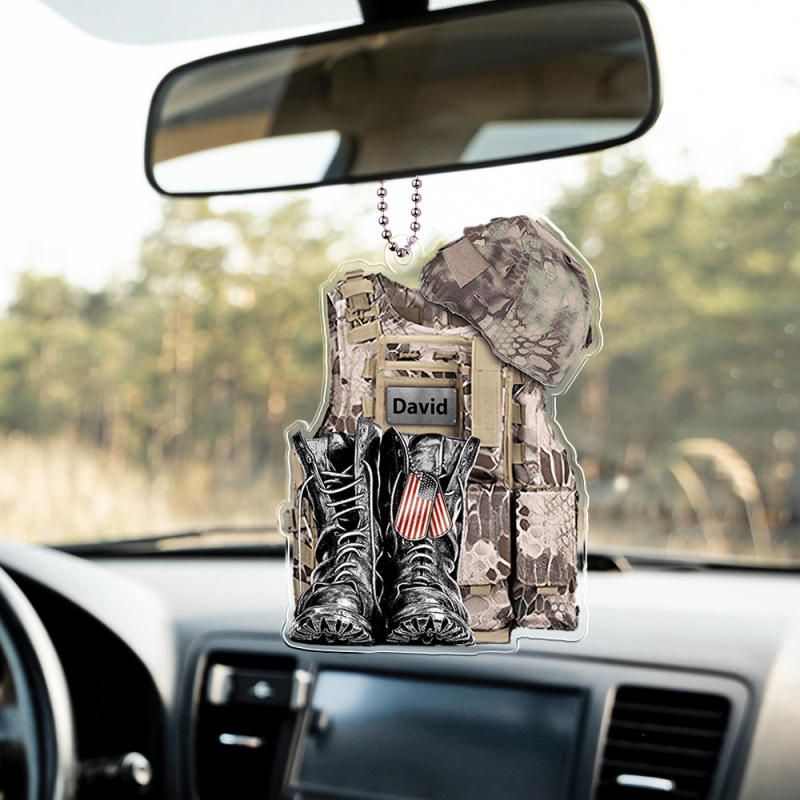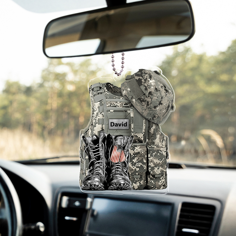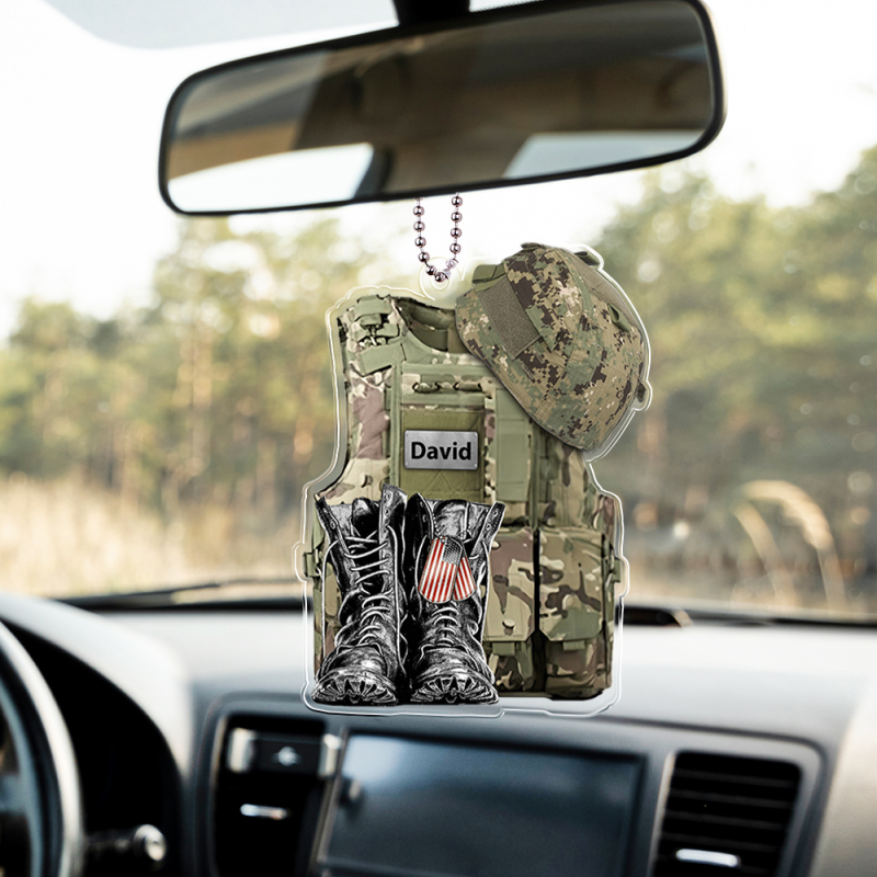 Custom Name Personalized Veteran Acrylic Military Uniforms Car Ornament Gift For Veteran