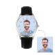 Custom Name Photo Watch 40mm Black Leather Strap Personalized Gift for Him