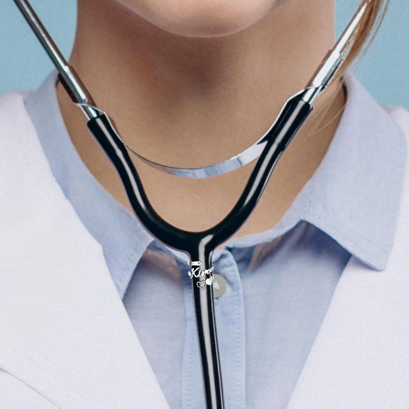 This custom name stethoscope ID tag makes a great gift for any nurse, or doctor, including a nursing student, or someone who has just become an RN. The ID tag has an adjustable circle to allow you to slide the ring on and gently size it.